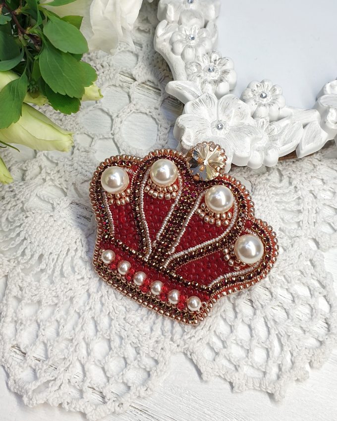 Medžiagos: čekiškas biseris, Swarovski kristalai, Swarovski perliukai, prancūziška vielutė, kristalų juostos, oda.