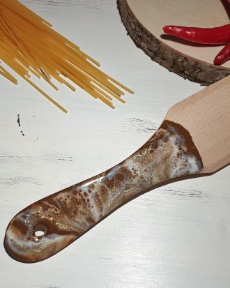 Medinės mentelės dekoruotos epoksidine derva Resin Art technikoje. Kiekvienas gaminys yra unikalus, daugiasluoksnis, su nepakartojamu spalvų raštu.