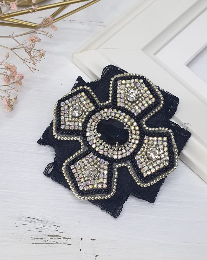 Medžiagos: čekiškas biseris, kristalai, kristalų juostos, prancūziška vielutė, nėriniai, satino juostos.