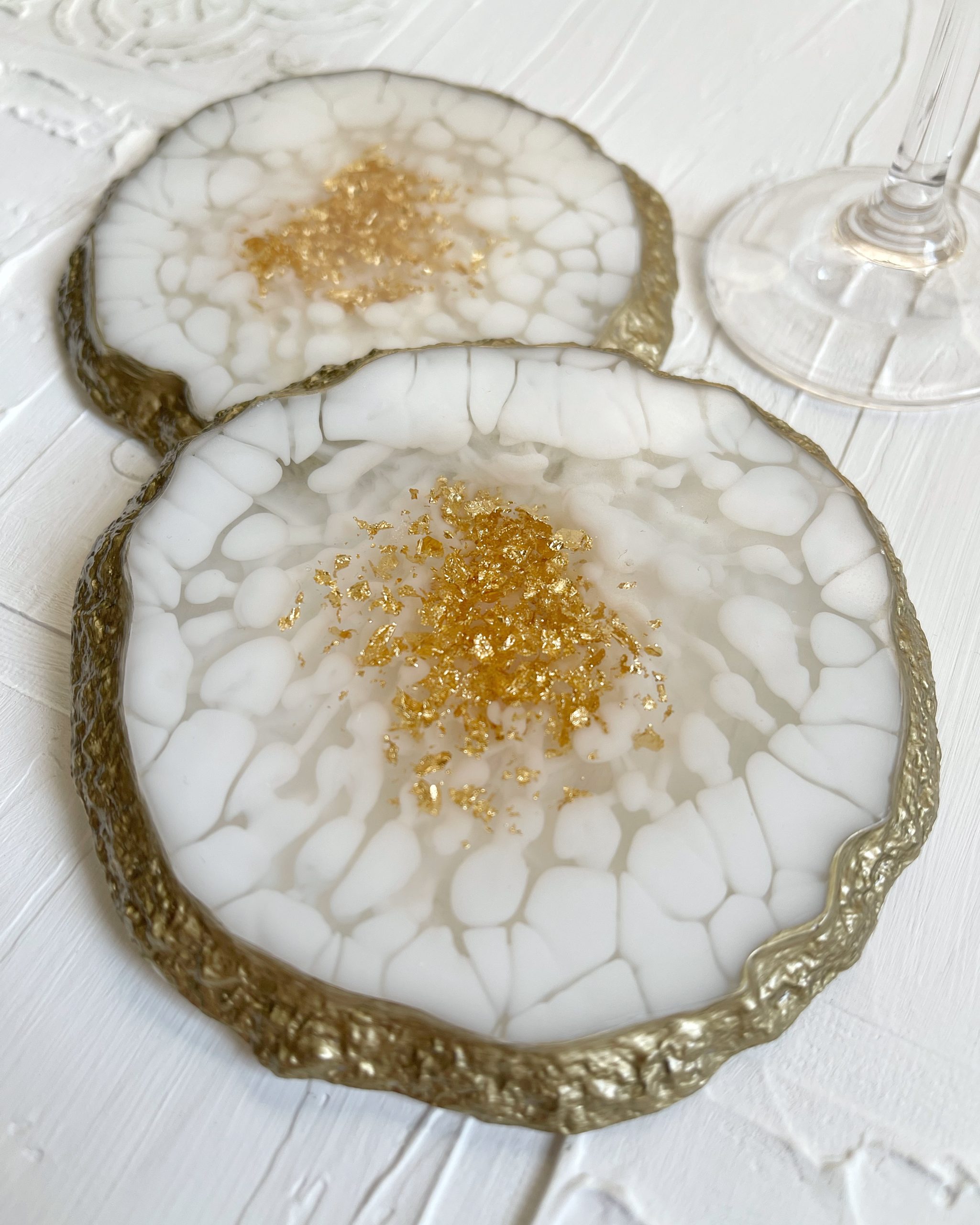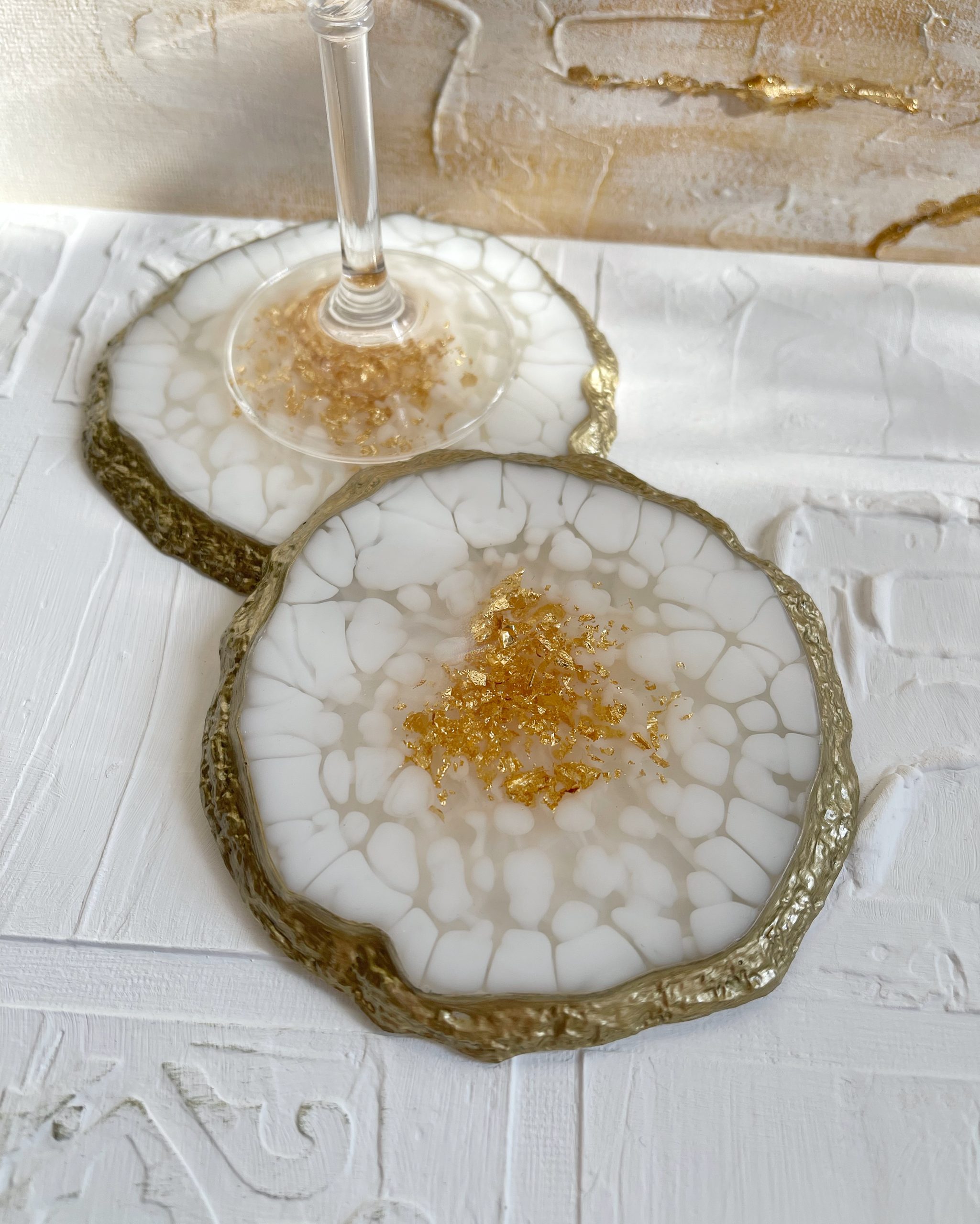 Padėkliukai pagaminti iš epoksidinės dervos Resin Art technikoje.