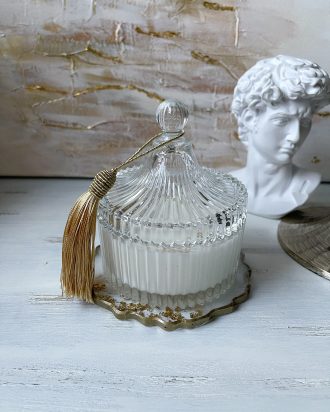 • Sojų vaško žvakė krištoliniame indelyje, 200 gr.